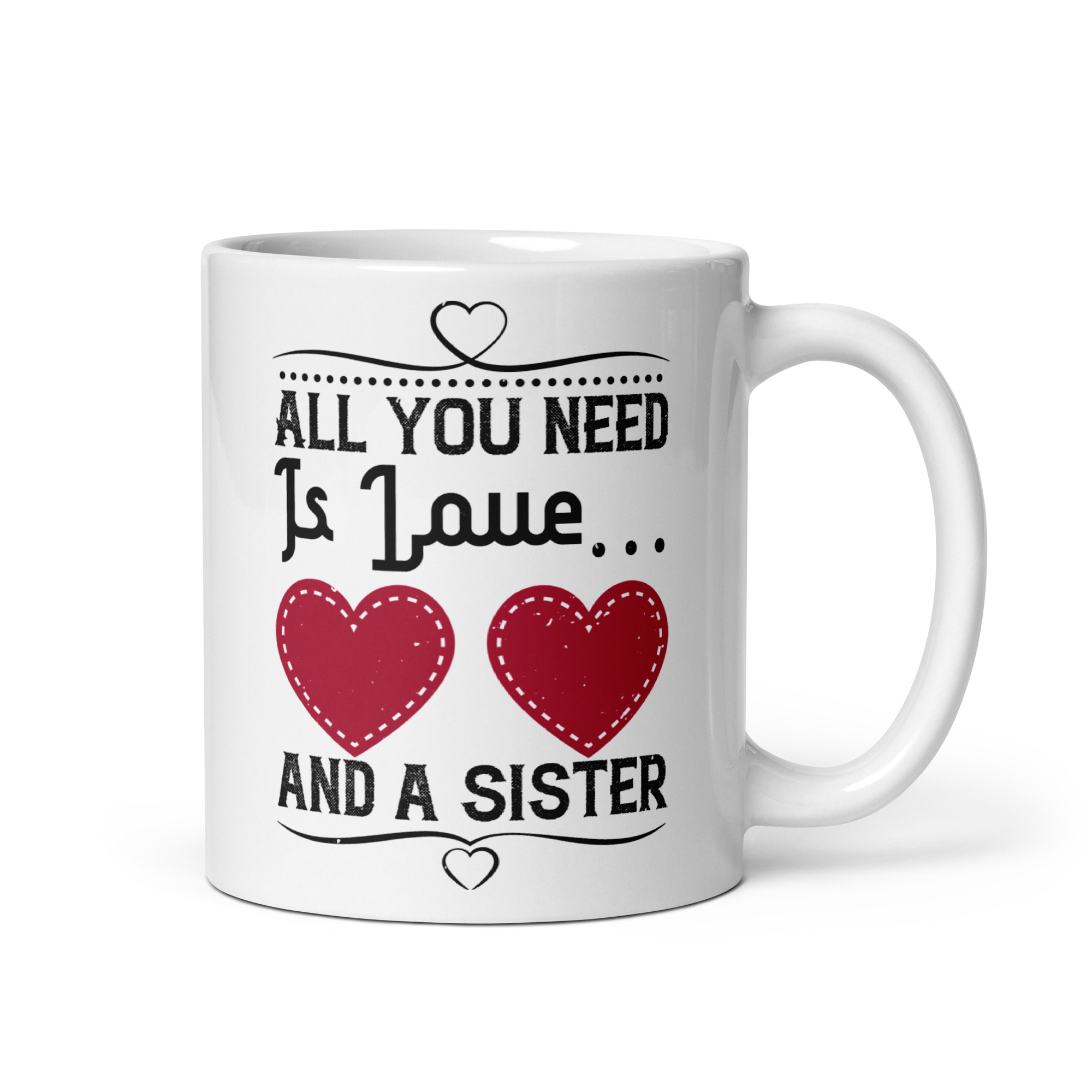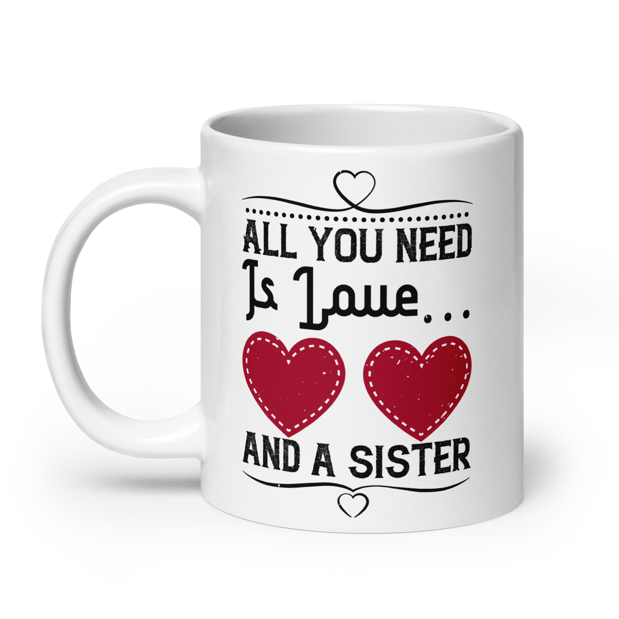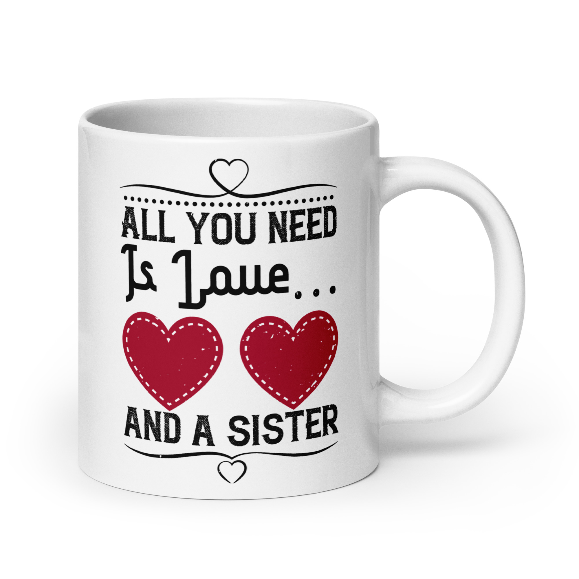 Looking for a fun addition to your caffeinated mornings? This ceramic All you need is love and a sister funny coffee mug / cup is sure to put a smile on your face! It’s dishwasher-safe and perfect for everyday use.
