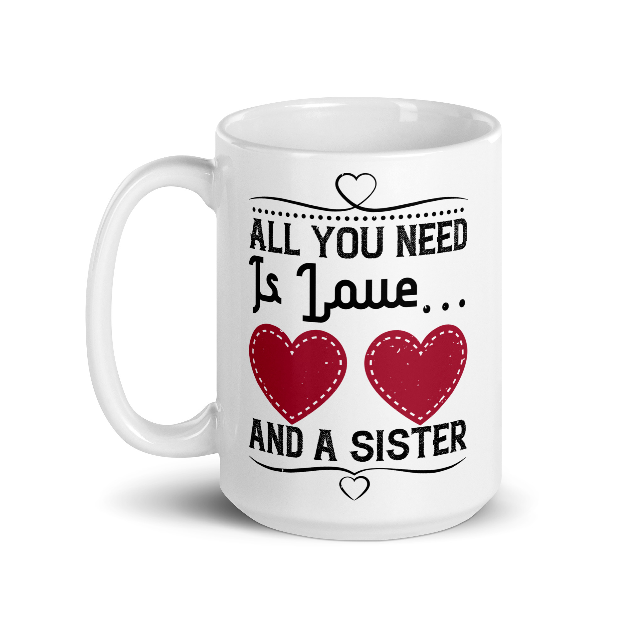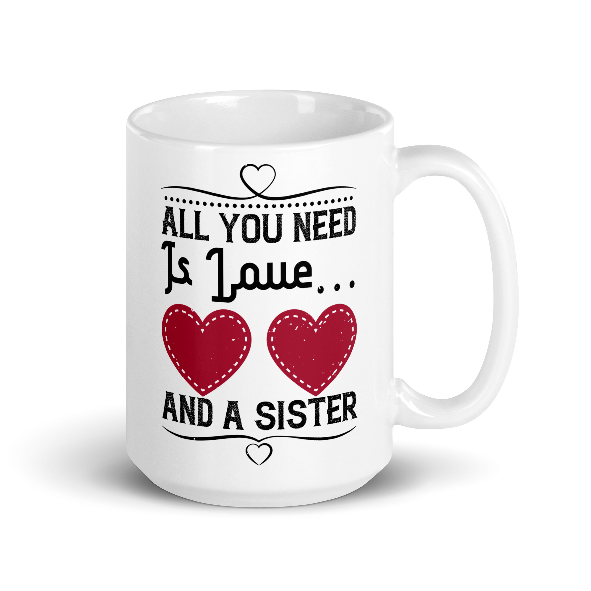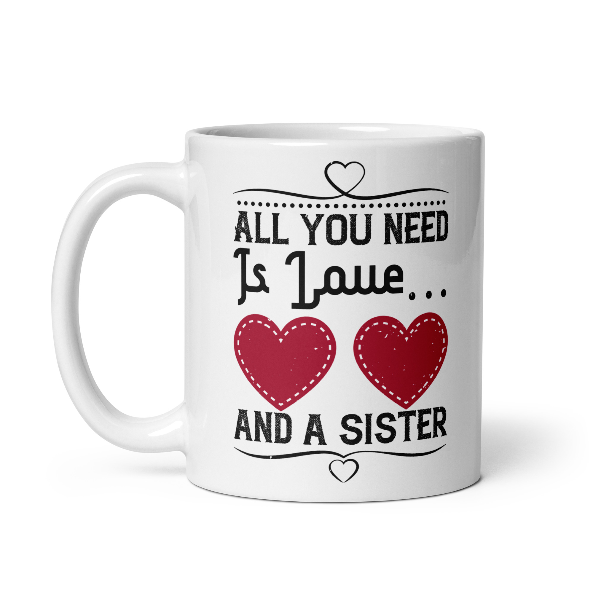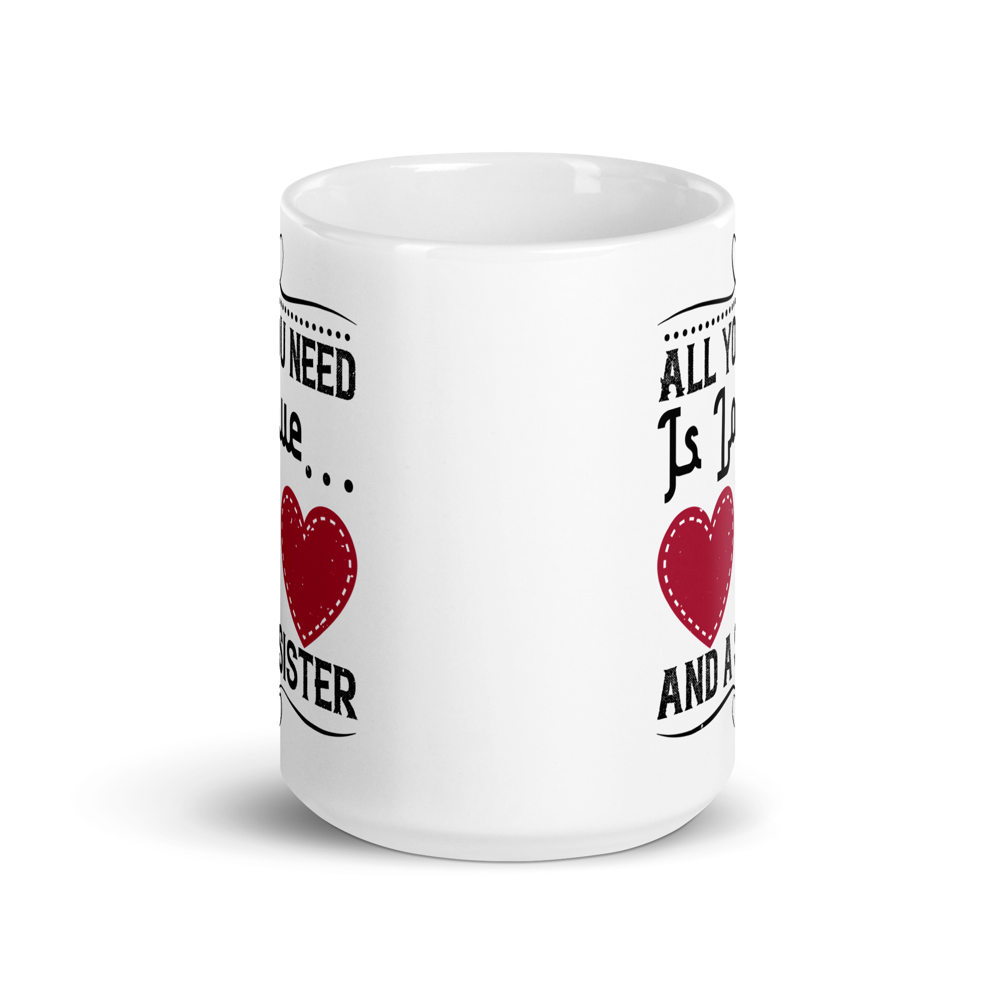 Looking for a fun addition to your caffeinated mornings? This ceramic All you need is love and a sister funny coffee mug / cup is sure to put a smile on your face! It’s dishwasher-safe and perfect for everyday use.