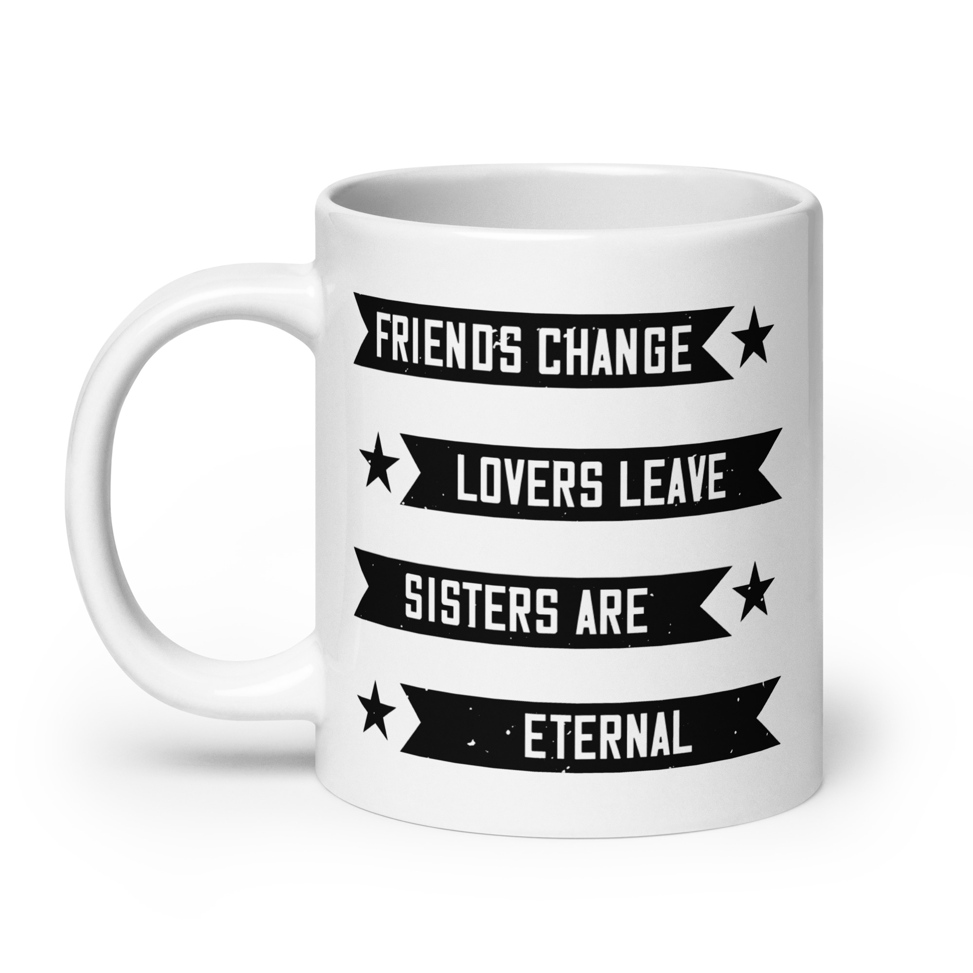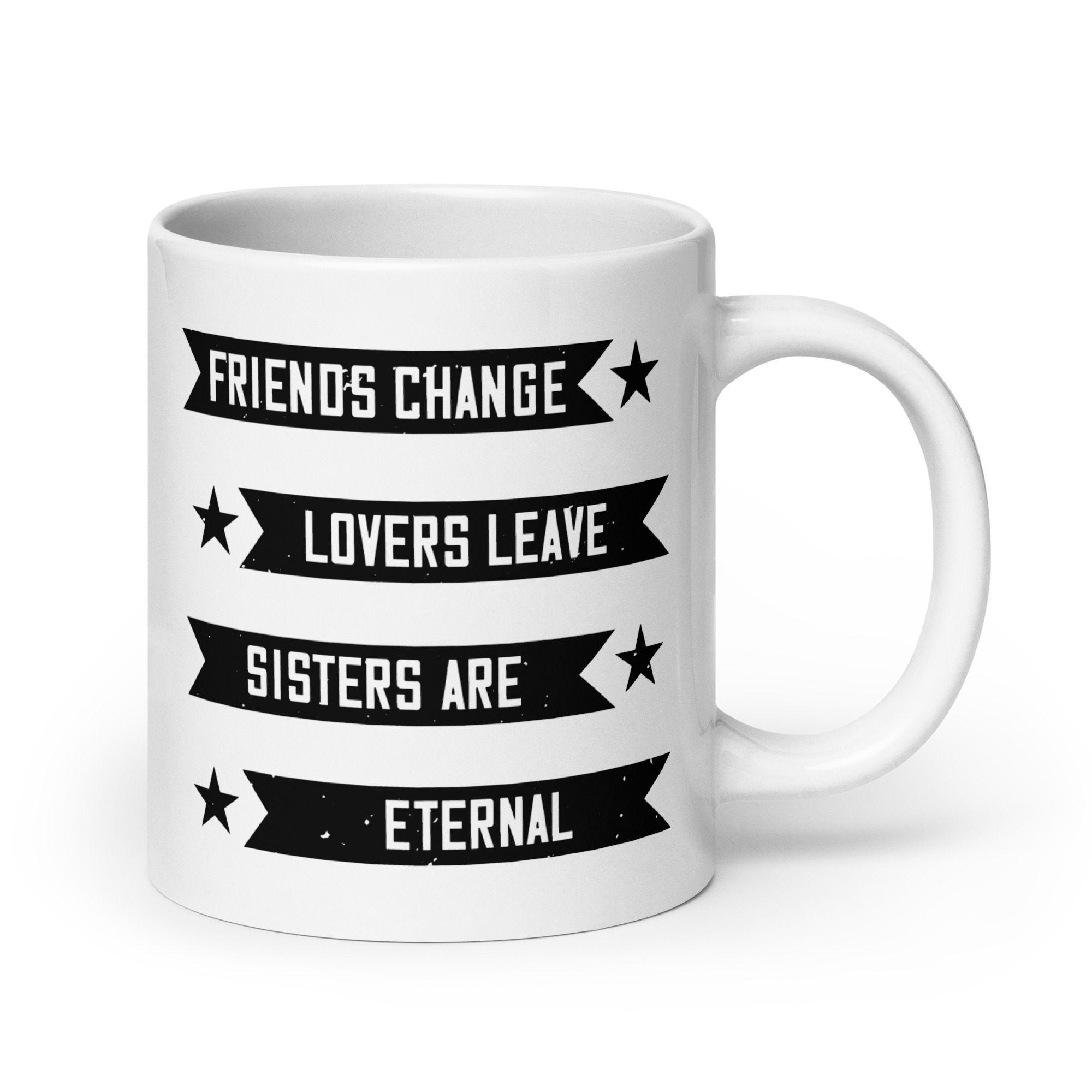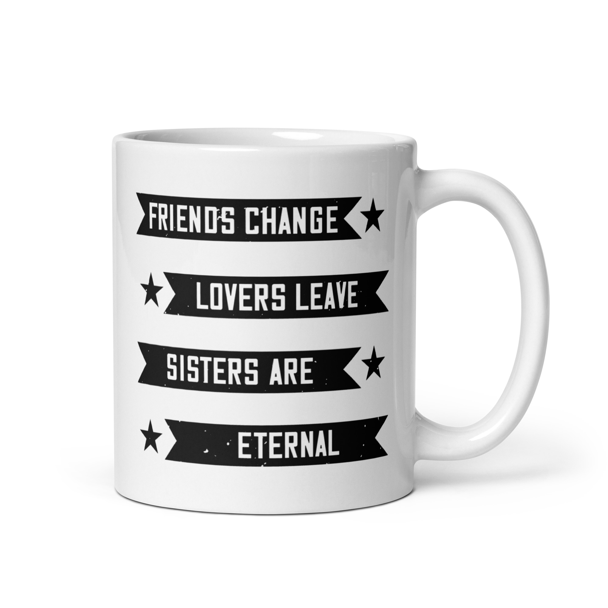 Looking for a fun addition to your caffeinated mornings? This ceramic Friends change lovers leave sisters are eternal funny coffee mug / cup is sure to put a smile on your face! It’s dishwasher-safe and perfect for everyday use.