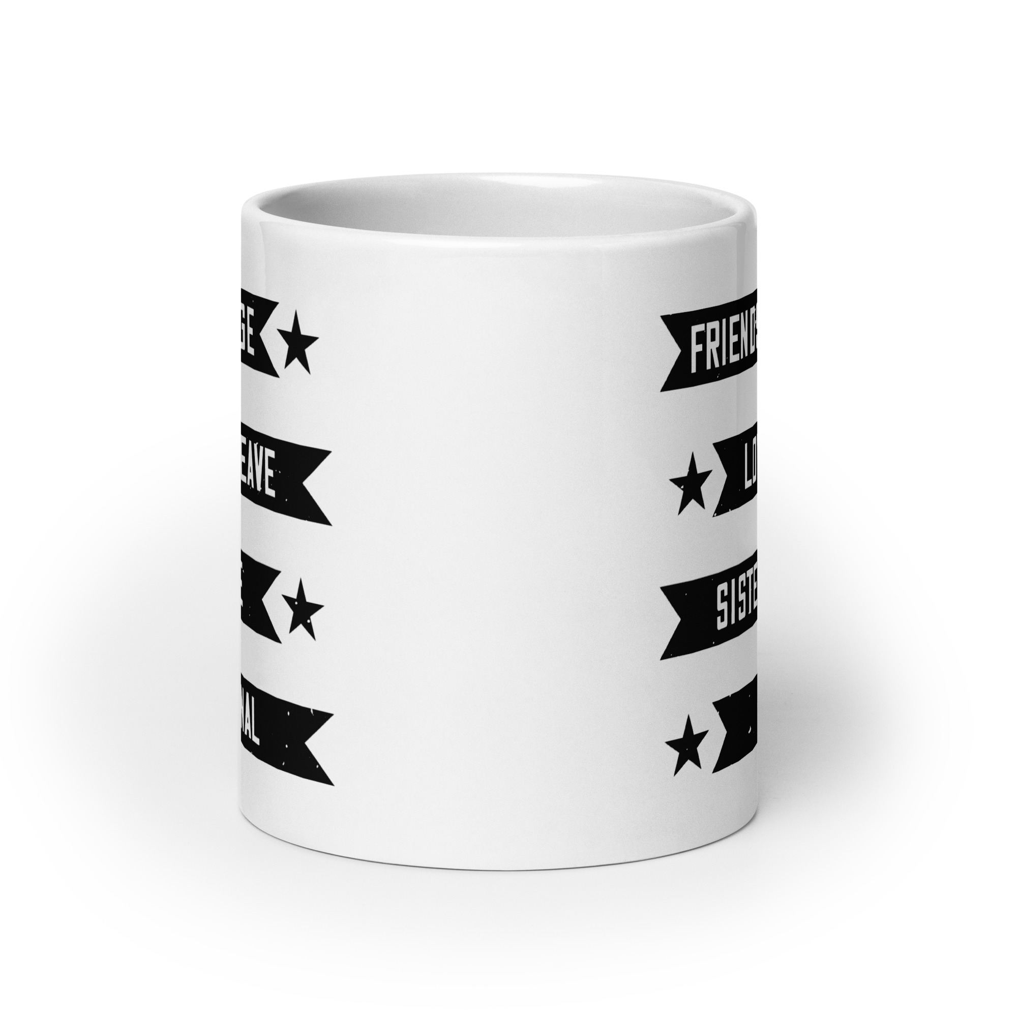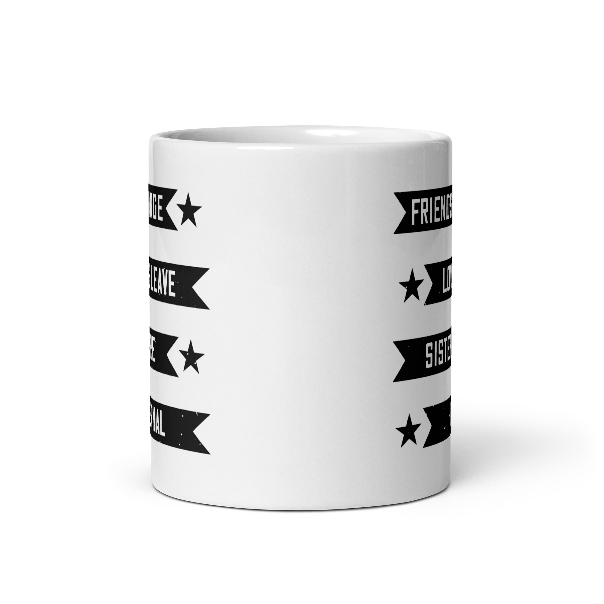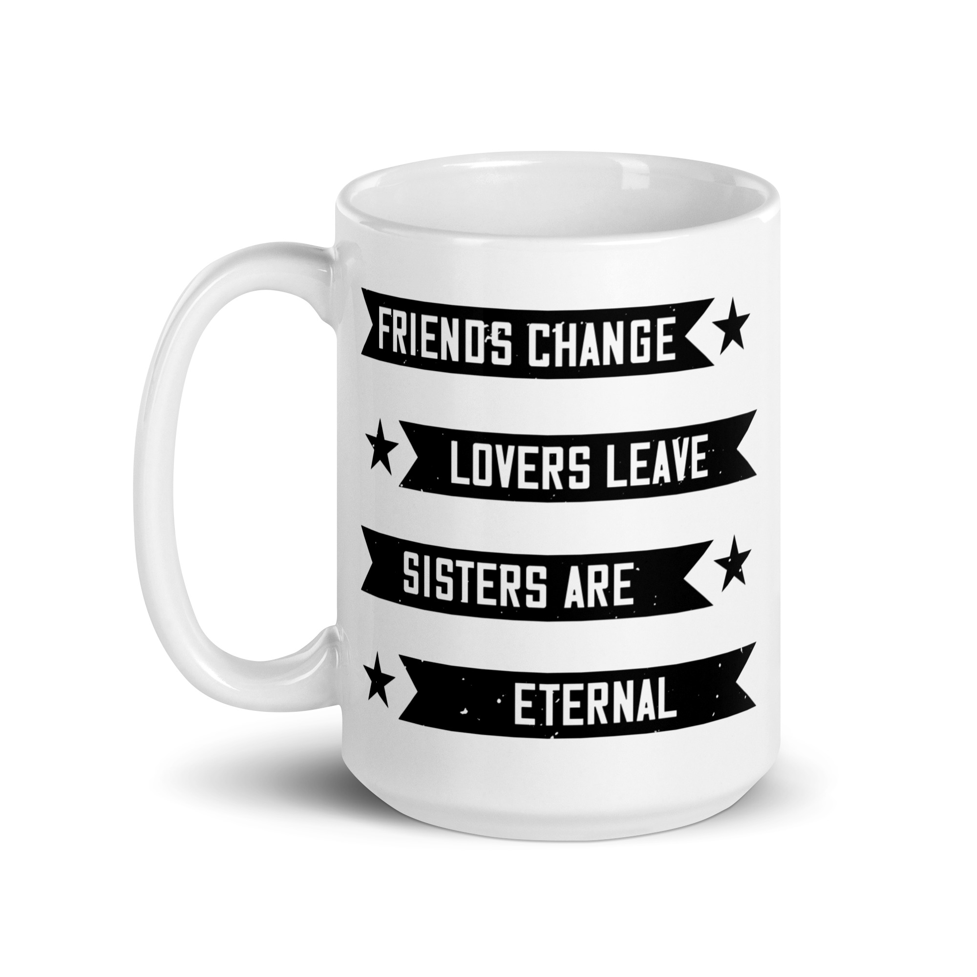 Looking for a fun addition to your caffeinated mornings? This ceramic Friends change lovers leave sisters are eternal funny coffee mug / cup is sure to put a smile on your face! It’s dishwasher-safe and perfect for everyday use.