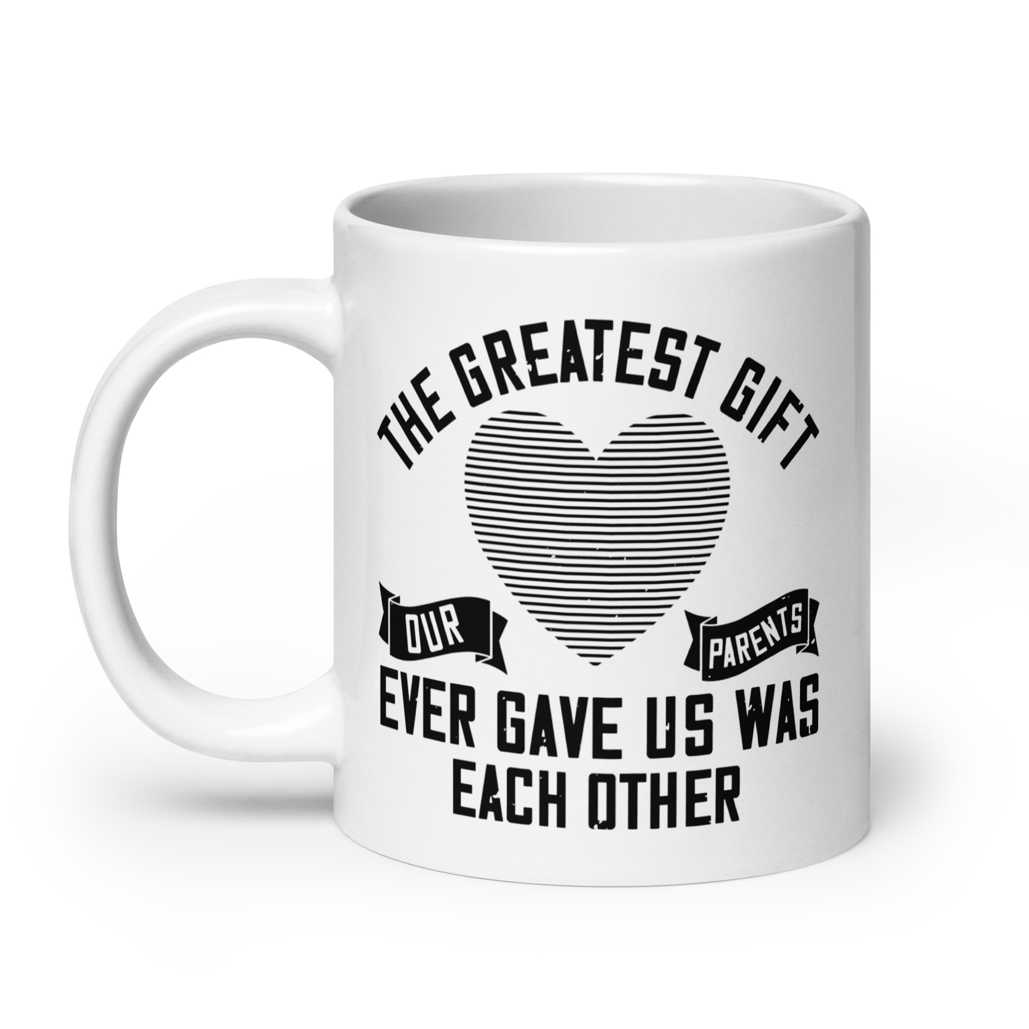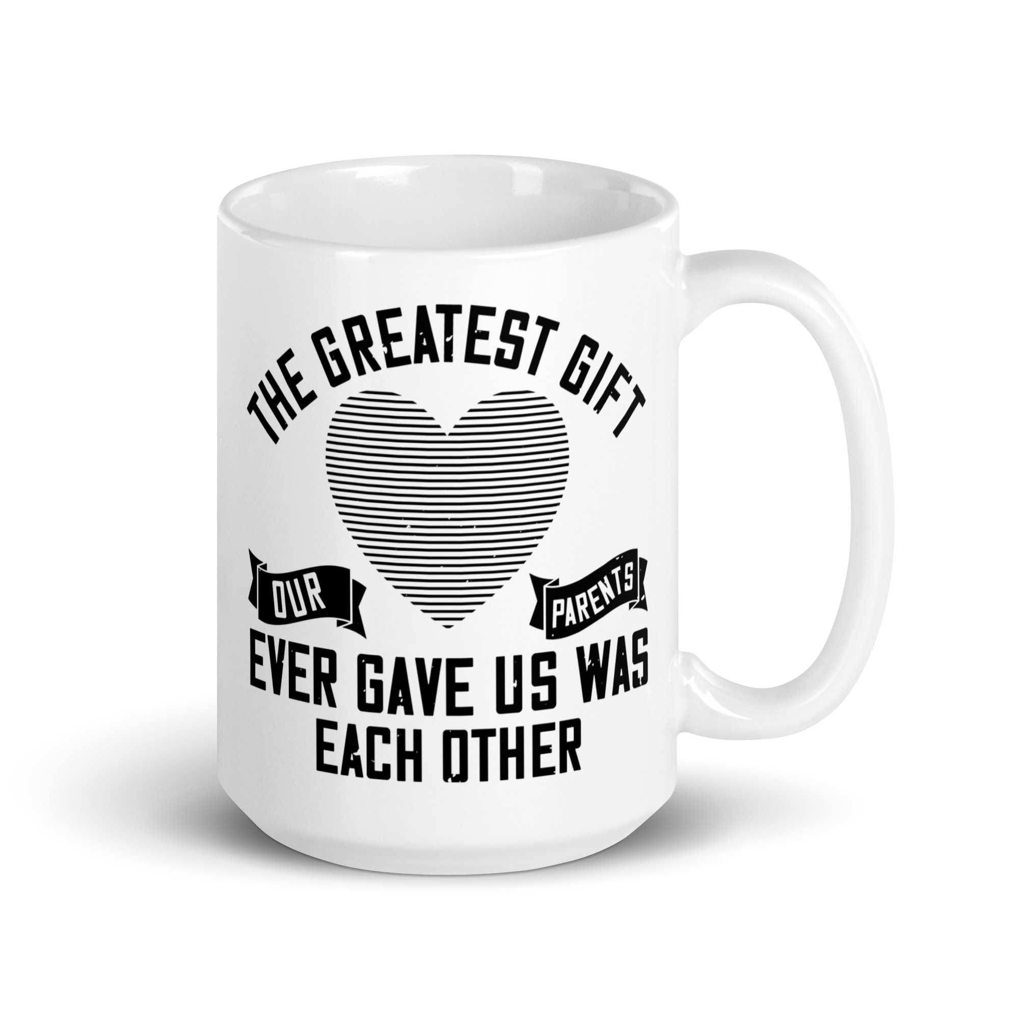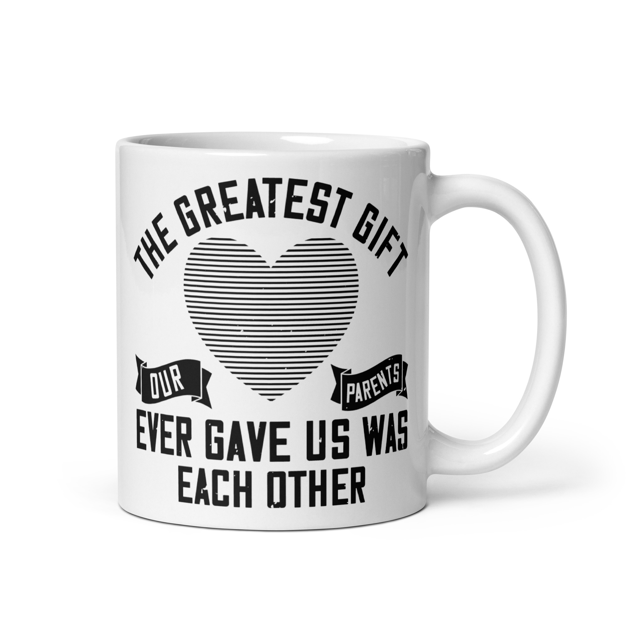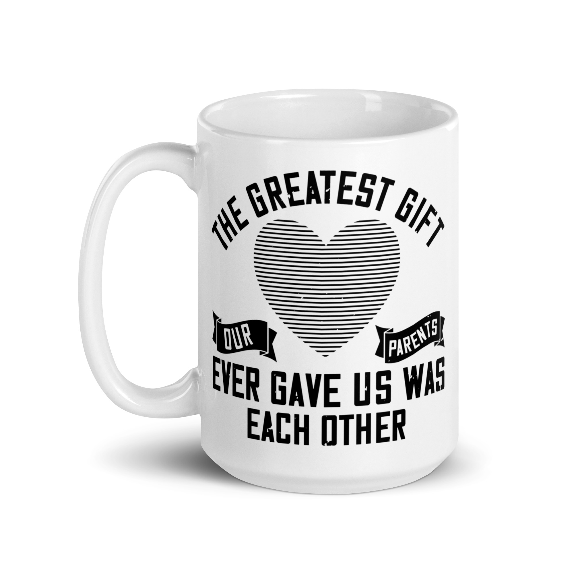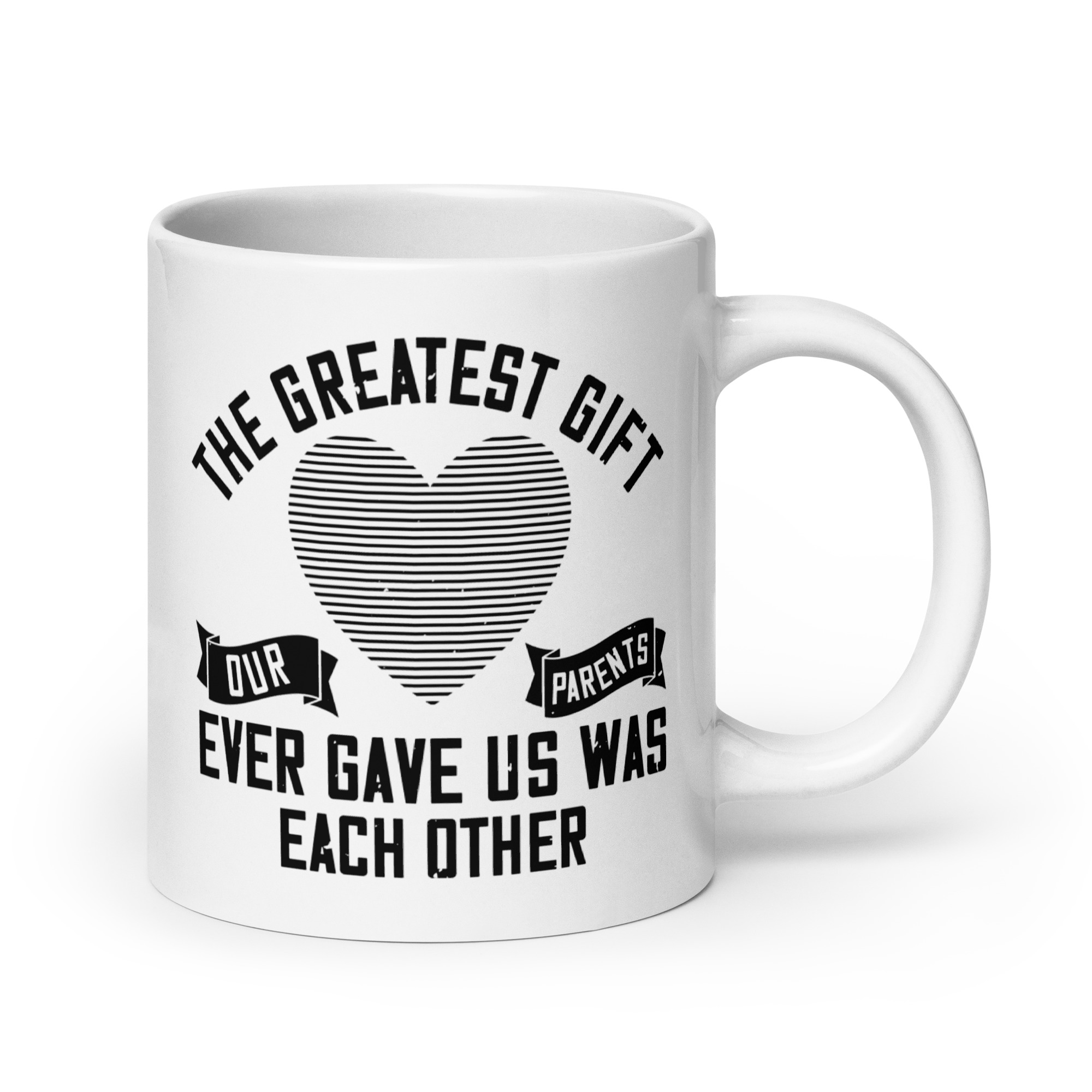 Looking for a fun addition to your caffeinated mornings? This ceramic The greatest gift our parents ever gave us was each other funny coffee mug / cup is sure to put a smile on your face! It’s dishwasher-safe and perfect for everyday use.