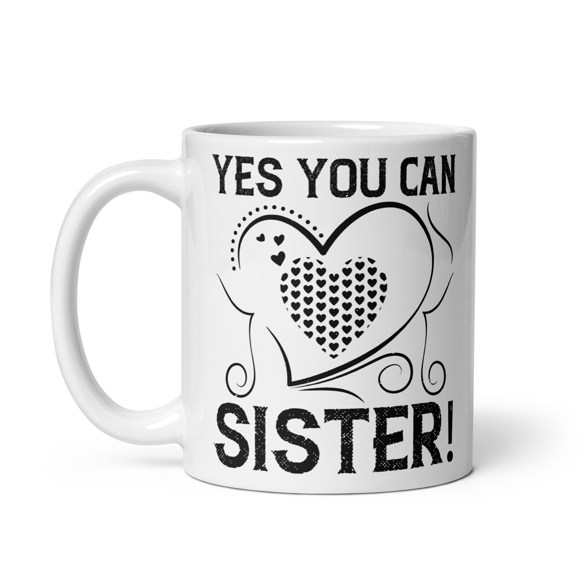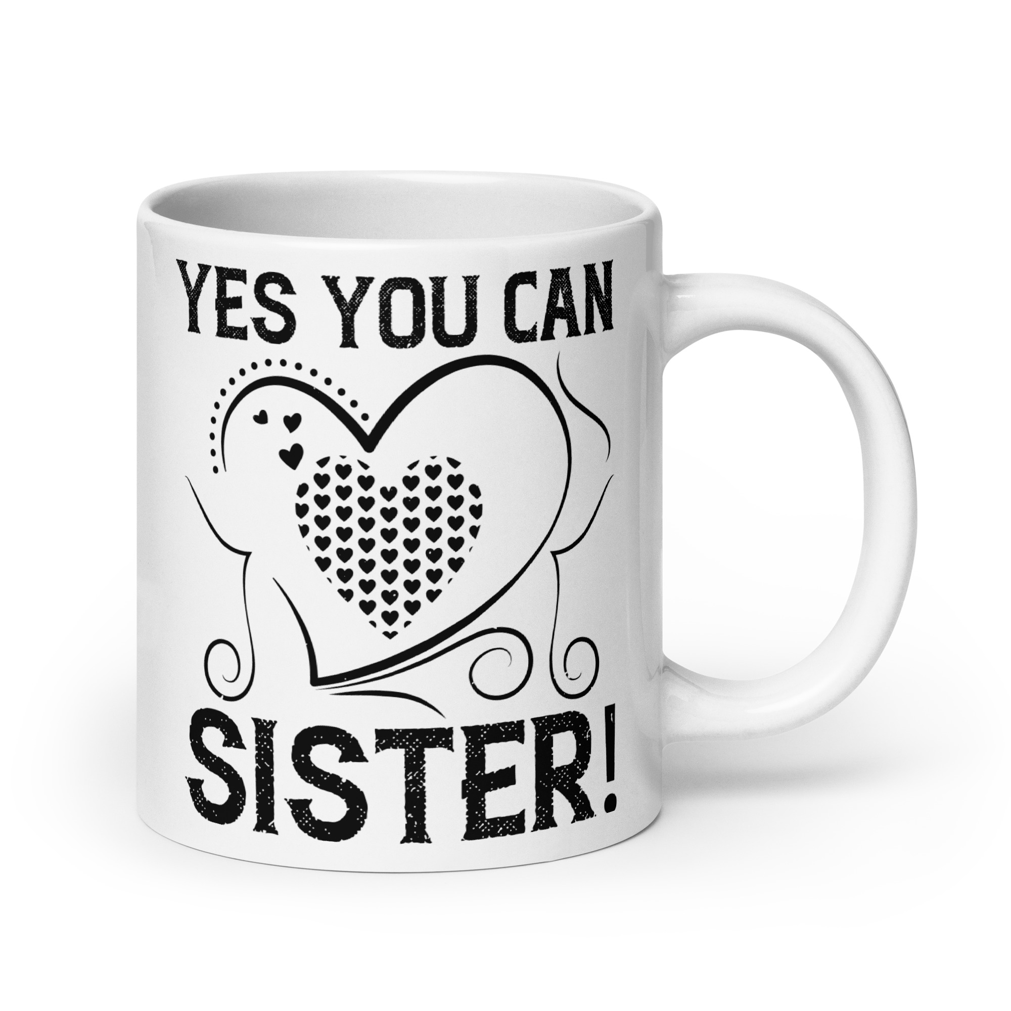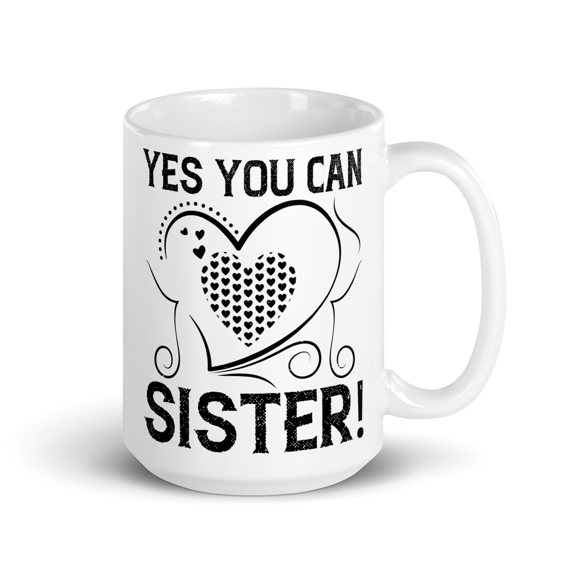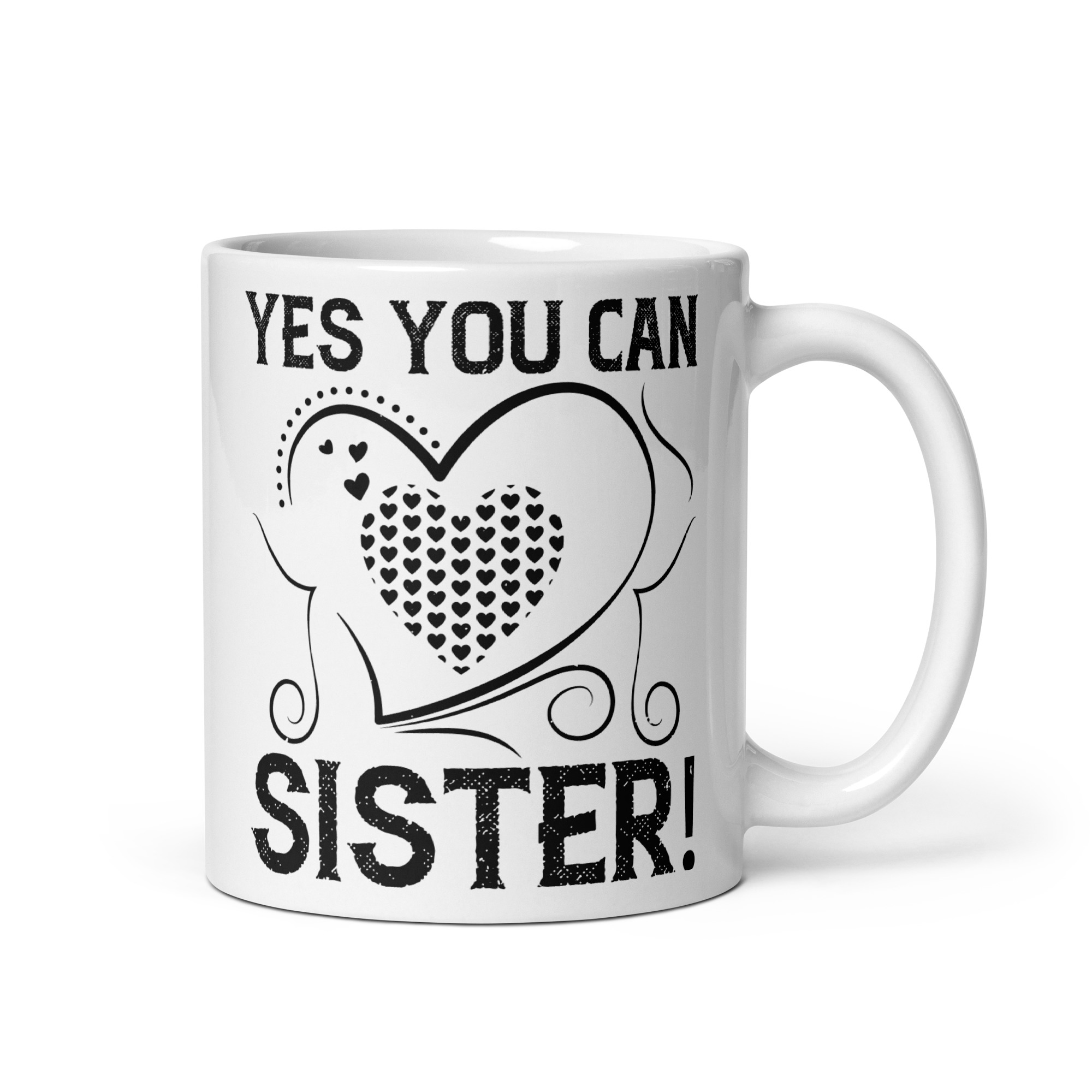 Looking for a fun addition to your caffeinated mornings? This ceramic Yes you can sister funny coffee mug / cup is sure to put a smile on your face! It’s dishwasher-safe and perfect for everyday use.