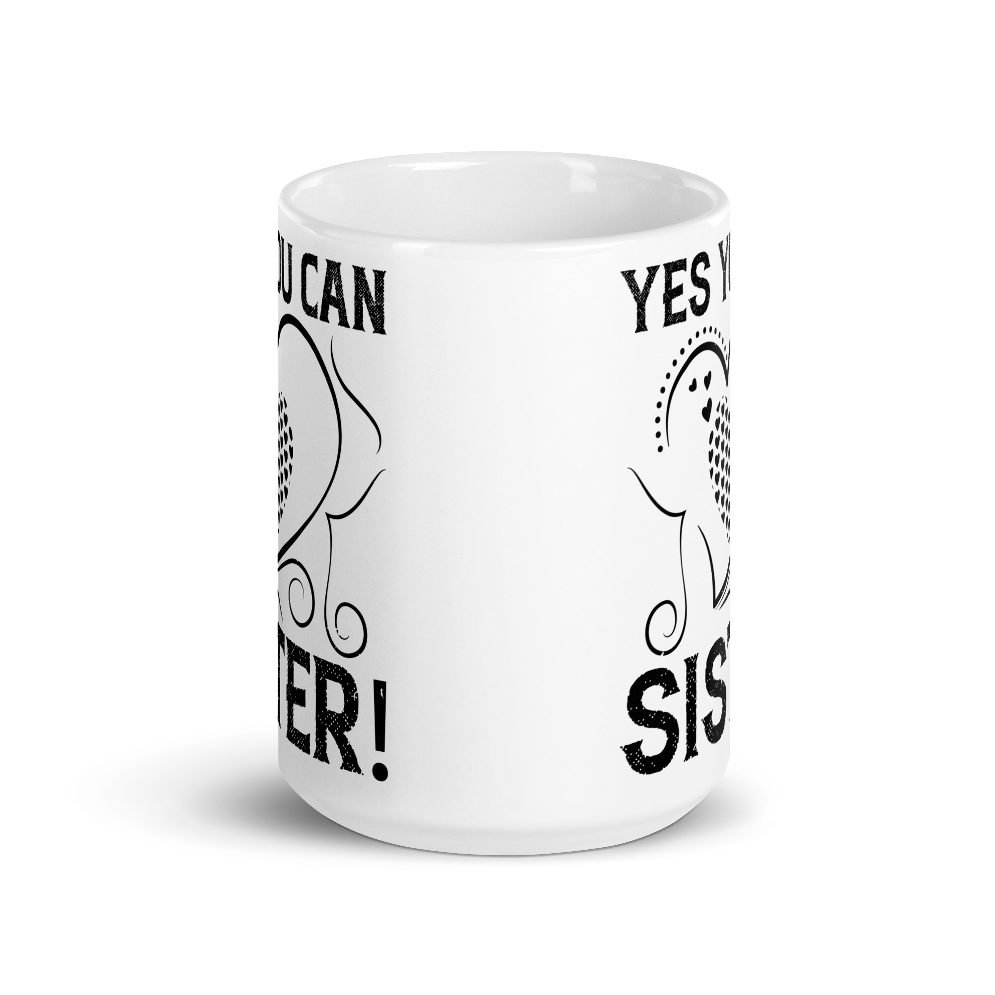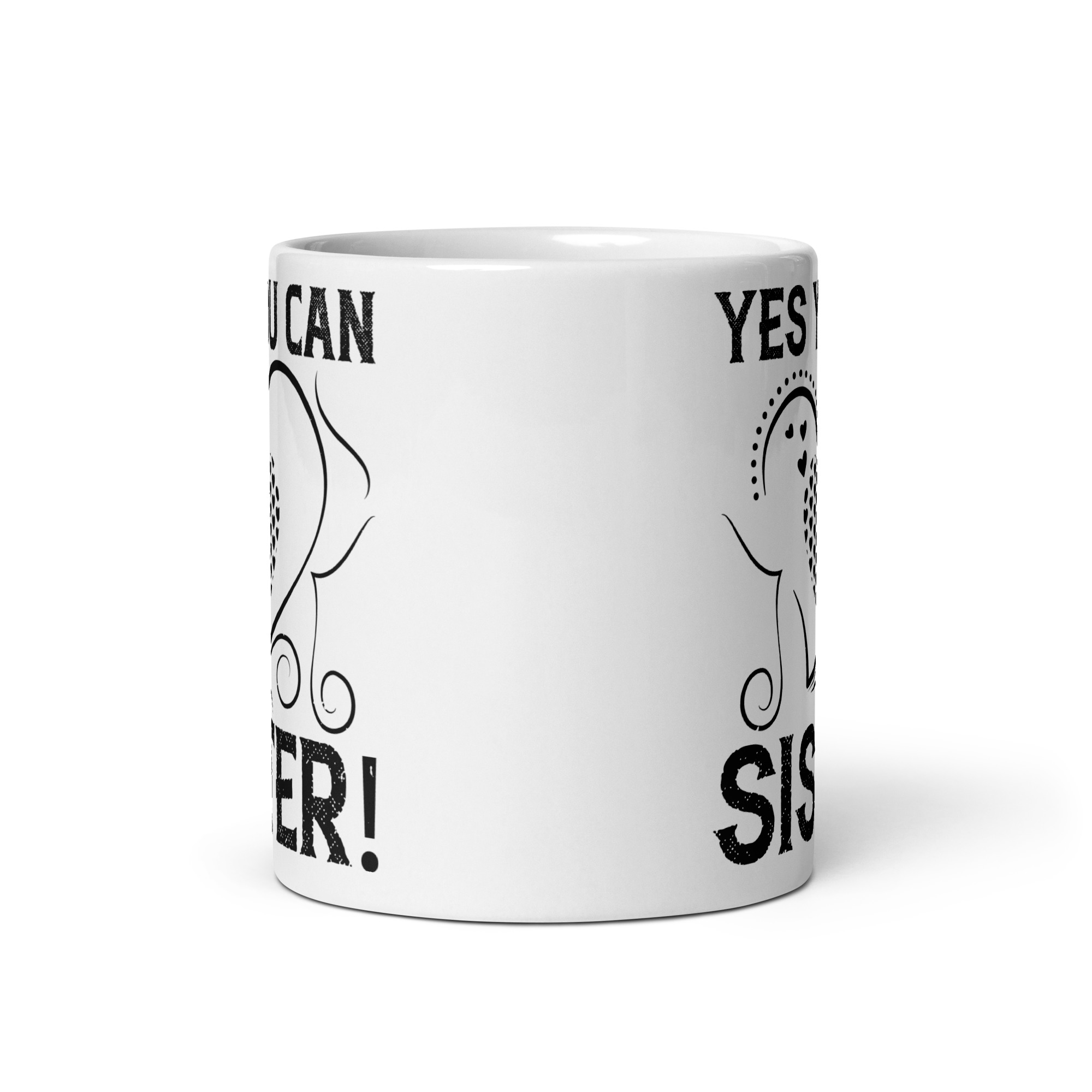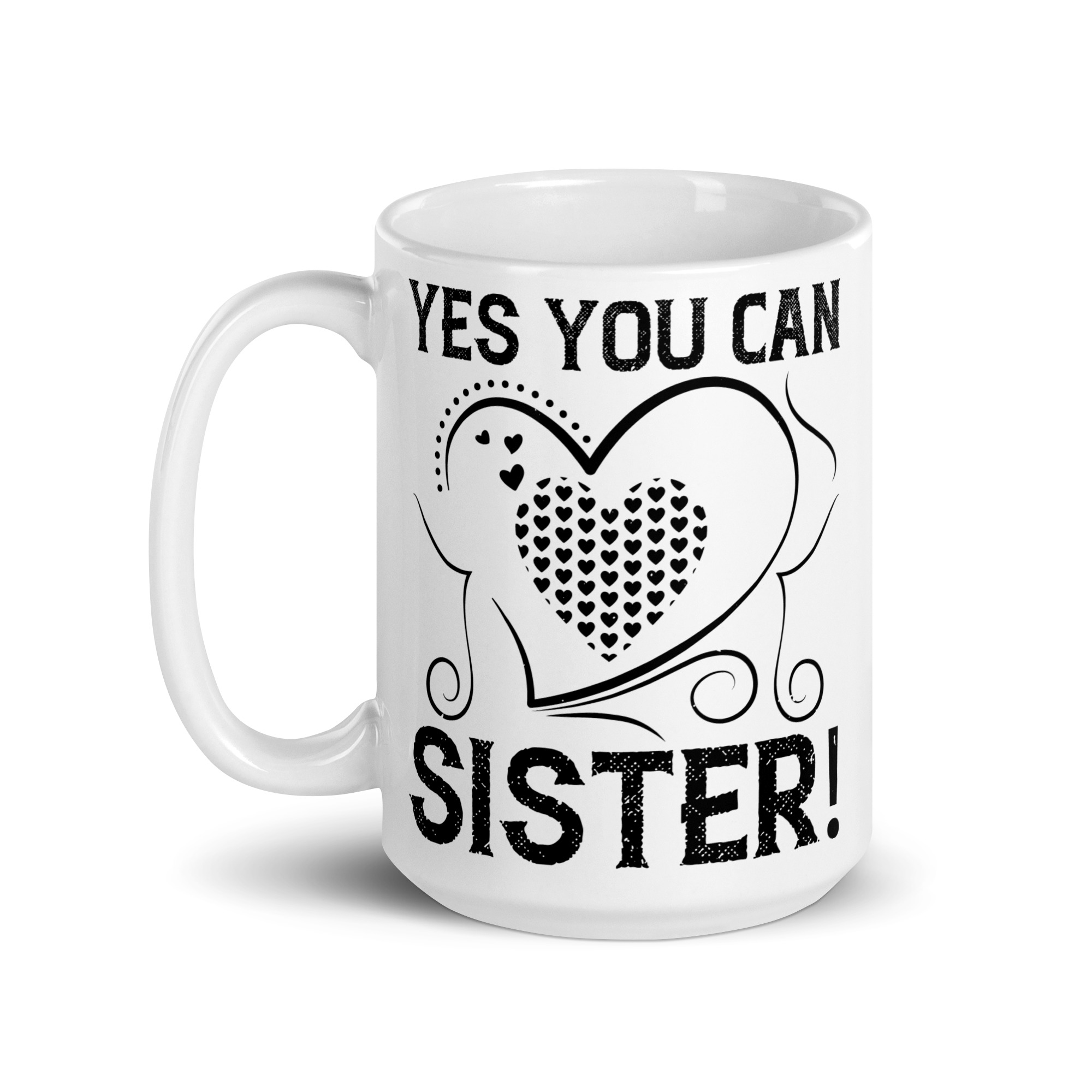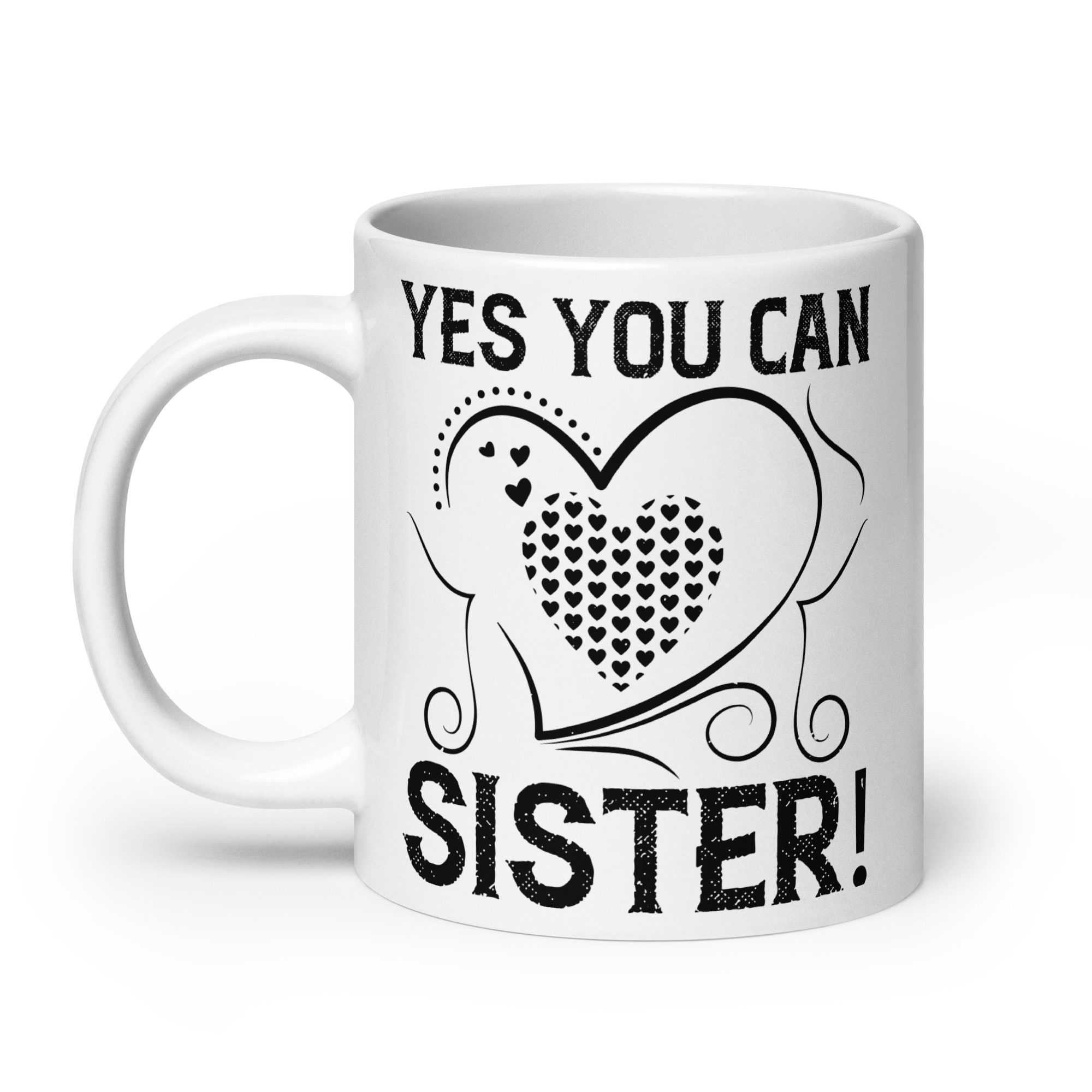 Looking for a fun addition to your caffeinated mornings? This ceramic Yes you can sister funny coffee mug / cup is sure to put a smile on your face! It’s dishwasher-safe and perfect for everyday use.